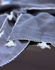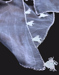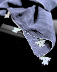 Discover the GiGi Scarf – where timeless Anatolian artistry meets contemporary luxury. Each unique GiGi scarf features hand-selected silk, thoughtfully chosen by designer Güngör for its color and quality. Every piece is adorned with intricate lace designed in harmony with the fabric, crafted by using traditional needlework techniques.